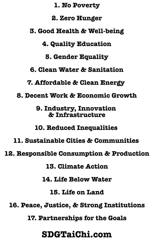 Practice two minutes of the best tai chi, while saying the United Nations Sustainable Development Goals everyday.